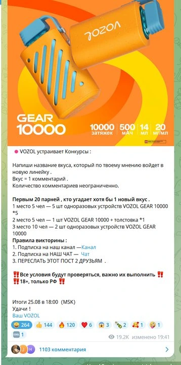 3rd place 10 people - 2 pcs of disposable devices VOZOL GEAR 10000.